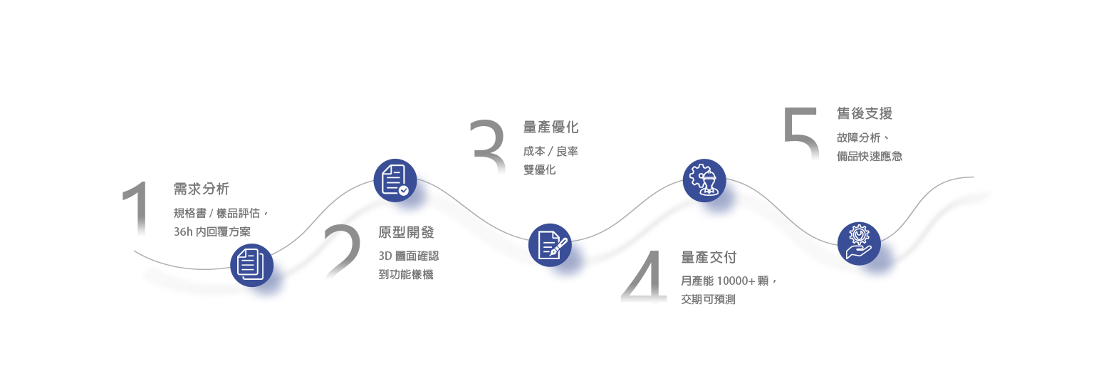 需求分析 規格書 / 樣品評估,36h 內回覆方案 3 個工作天